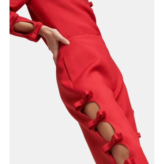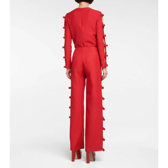 Coordinate the matching sweater with these Valentino pants – perfect for festive occasions. Made from wool and silk-blend cady, this style is cut with a high rise, and bow trims define their wide legs.