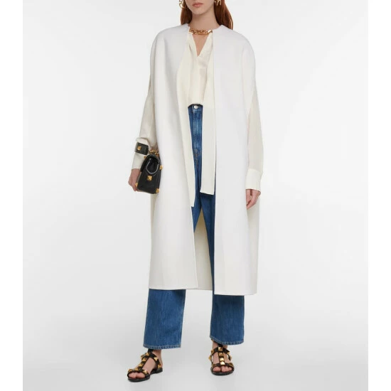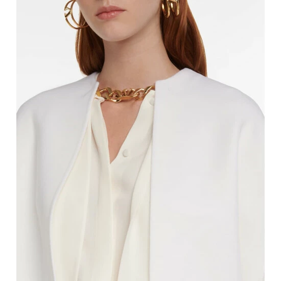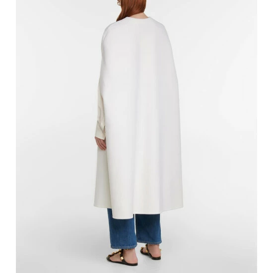 Made in Italy from soft wool and cashmere, this cape is the quintessential Valentino staple. It’s cut into a fluid, elegant silhouette in a crisp white hue and finished with a gold-toned chain adorning the neck.