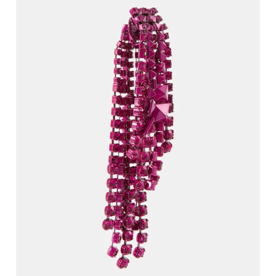 Valentino Garavani looked to ancient architecture to create the now-iconic Rockstud embellishments. The Brightrain earrings are embellished with tonal Rockstuds and glittering crystals, fastening with clip closures.