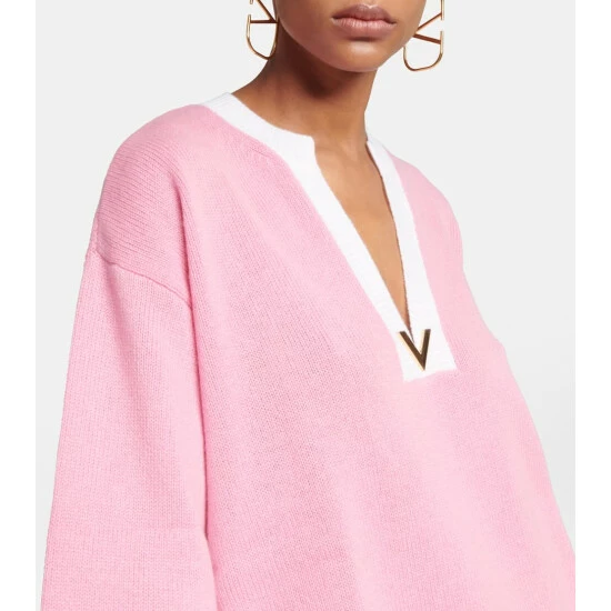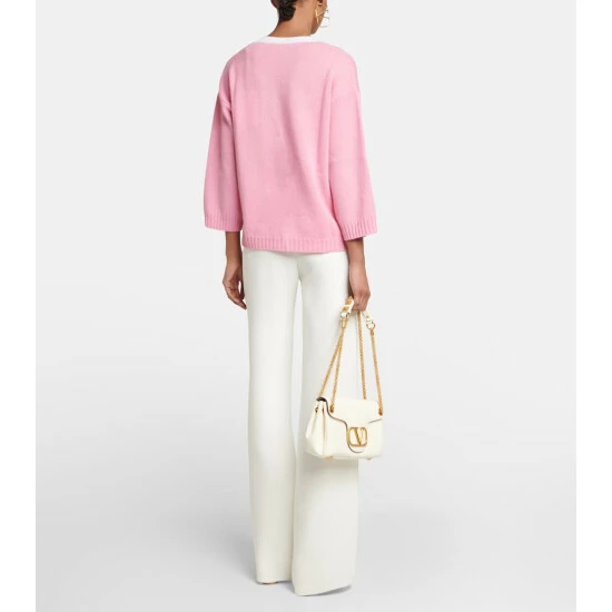 Your knitwear edit is not complete without this sweater from Valentino. Made from pure cashmere, the effortlessly chic style boasts a contrasting kaftan-style neckline with a V-gold detail and is finished with ribbed trims.