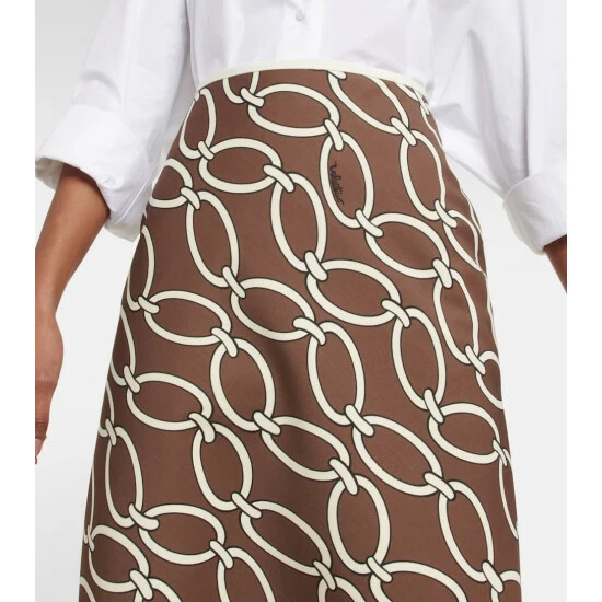 Valentino references the classic designs on vintage silk scarves for this graphic maxi skirt. Made from a wool blend, the straight silhouette of this style falls from a mid-rise waist and boasts a chain-link print.