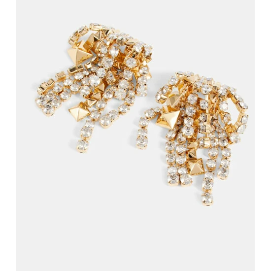 Valentino Garavani looked to ancient architecture to create the now-iconic Rockstud embellishments. The motif embellishes the scintillating crystal drops of these waterfall-inspired earrings, suitable for all lobes with clip-on bases.