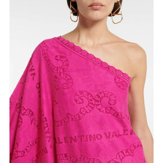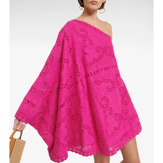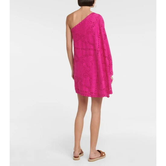 Synonymous with Valentino’s vivacious vision, this minidress is part of the Pink PP collection. Made from a cotton blend, this one-shoulder style has intricate cutwork with logo lettering, bordered by scalloped trims.