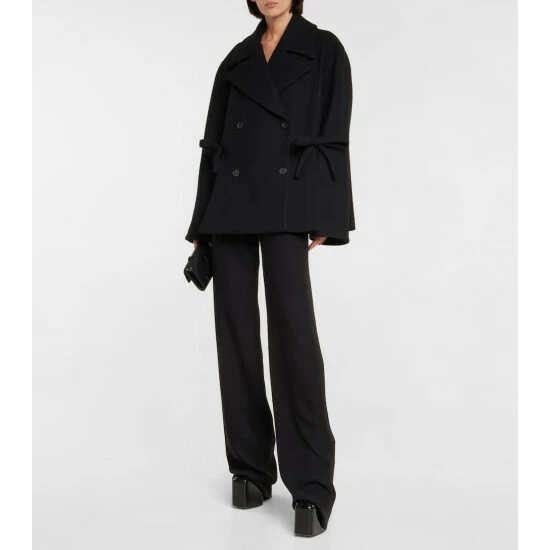A reinterpretation of the classic pea coat, this jacket from Valentino has an oversized, voluminous silhouette and bow detailing. The double-breasted style is made from wool-blend twill and features wide lapels.