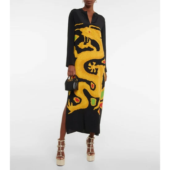Designed to make entrances unforgettable, this maxi dress from Valentino is emblazoned with a vibrant print that’s a re-edition of the house’s Drago motif. It’s made from silk crêpe-de-chine with side-slit hems for a fluid, comfortable drape.