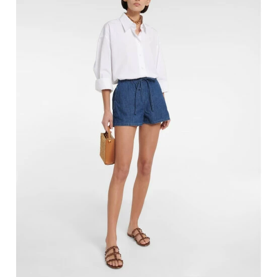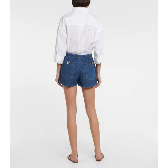 Valentino references classic denim design with these jean-inspired shorts. Made from cotton, this style has an elasticated drawstring waist for a relaxed profile, easing into flared legs that appear with a concealed front fly.