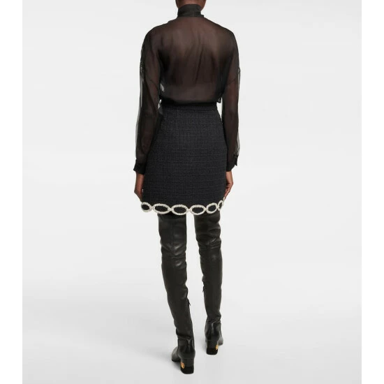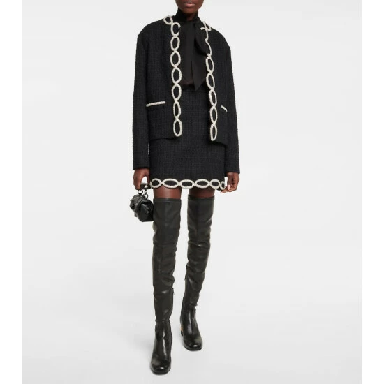 Valentino adds subtle glamour to this tweed miniskirt by incorporating sparkly bead embroidery at the hem in its chain motif. The style has a high-rise waist and comes with a silk lining.