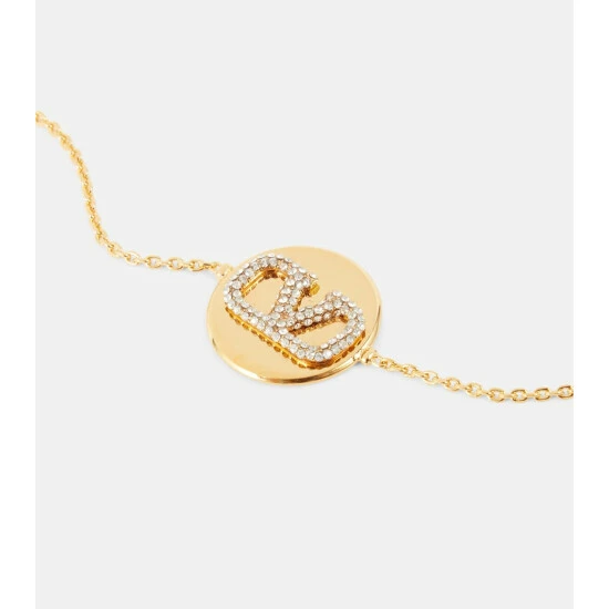 Bring a luxurious sparkle to your not-so-average jewelry edit with this Valentino bracelet. Featuring a delicate chain, brand plaque, and lobster clasp, it’s adorned with a crystal-embellished, Valentino-signature VLogo emblem.
