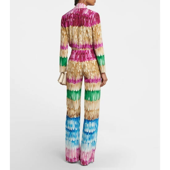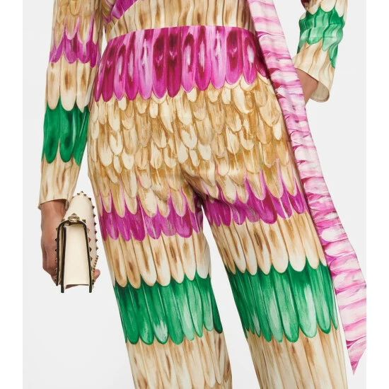 Embrace the high-octane tailoring of Valentino. Made from silk, this style has a layered feather print that’s balanced by a seamless, wide-leg silhouette that flows with languid ease and secures with an invisible side zip.