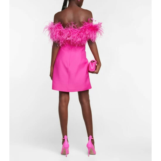 Saturated in Valentino’s Pink PP now-iconic shade, this minidress is worthy of a memorable occasion. It’s made from the brand’s signature wool and silk crêpe couture and accented with a glamourous feather-trimmed Bardot neckline.