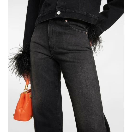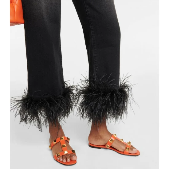 Valentino brings glitz and glam to classic denim with these statement-making jeans. Shaped for a flattering high-rise and wide-leg silhouette, they’re finished with feather trims at the cuffs.