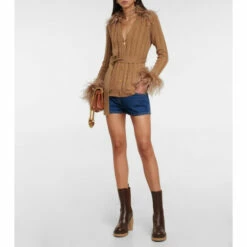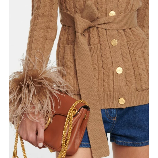 This cable-knit cardigan from Valentino is made from pure wool. It’s trimmed with feathers and is finished with logo-embossed golden buttons and a self-tie waist.