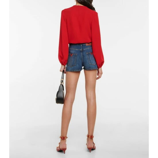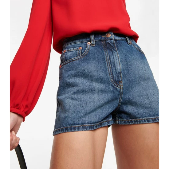 Invest in summer staples with these denim shorts from Valentino. In a faded mid-blue wash, they sit high on the waist with straight-legs. Note the logo-engraved fastening.