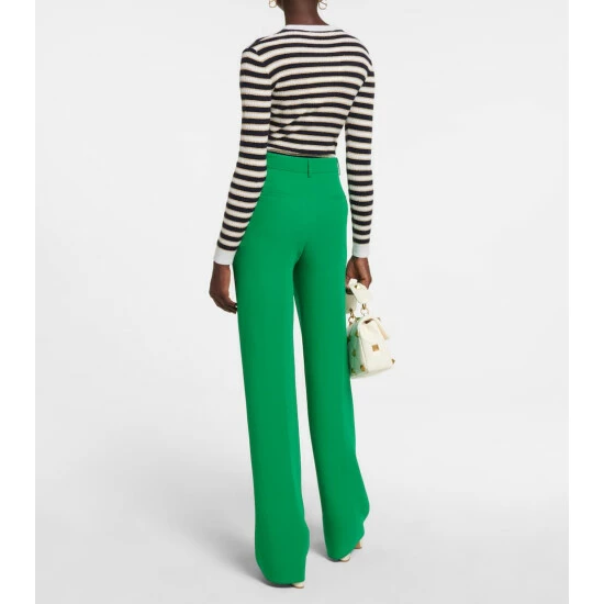 Made from pure silk yarns, Cady Couture is one of Valentino’s signature fabrications that will hold its shape well when worn. These pants are designed to sit high-waisted and have flared legs.