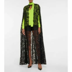 This floor-length cape from Valentino embodies timeless grandeur. Made in Italy, the streamlined design has scalloped edges, slits for effortless movement, and an elegant raised neckline.