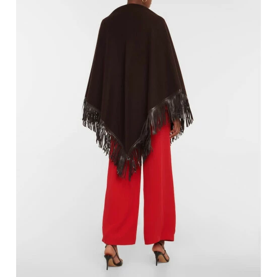 When the temperature drops, wrap yourself in this luxurious shawl from Valentino. Casually elegant, it’s made in Italy from smooth brown cashmere and trimmed with leather fringes.