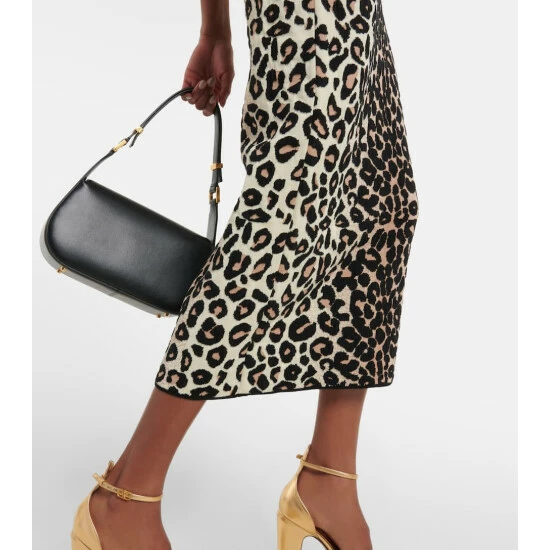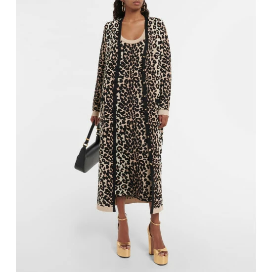 Valentino presents a casual take on its signature refined vision with this tactile midi dress. Appearing in a wool-blend leopard jacquard, this column silhouette has slim shoulder straps and ribbed-knit trims for an athleisure-inspired finish.