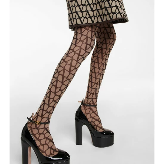 Show your love for Valentino with these semi-sheer tights from Valentino. They have a high rise and feature an all-over logo print.