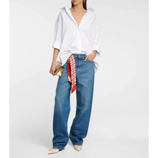 This season, Valentino taps into the trend for low-slung jeans. Made from non-stretch denim, this pair has a mid-blue wash and straight legs that bunch around the ankles for an effortless, relaxed look.