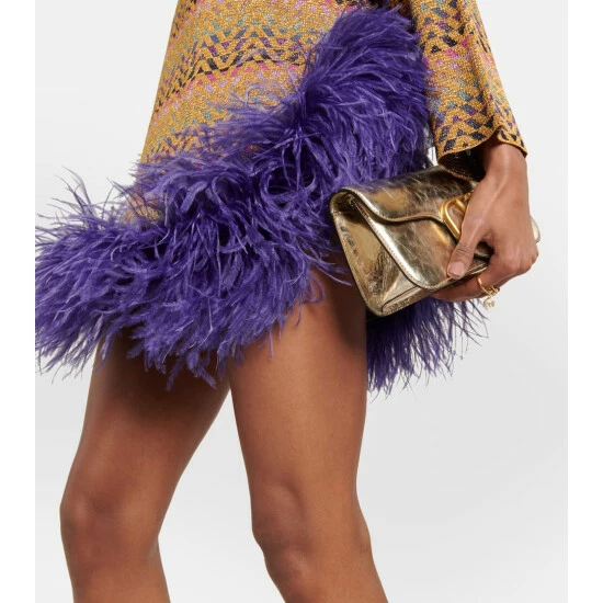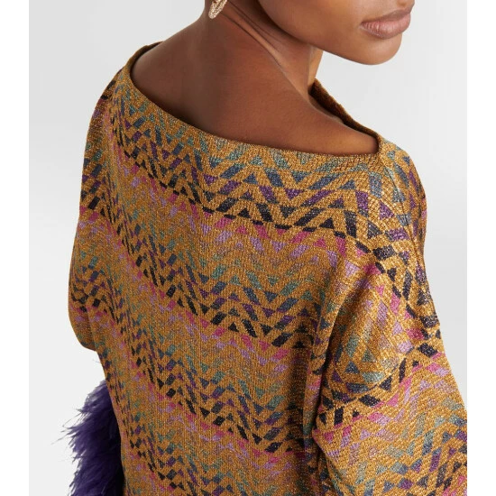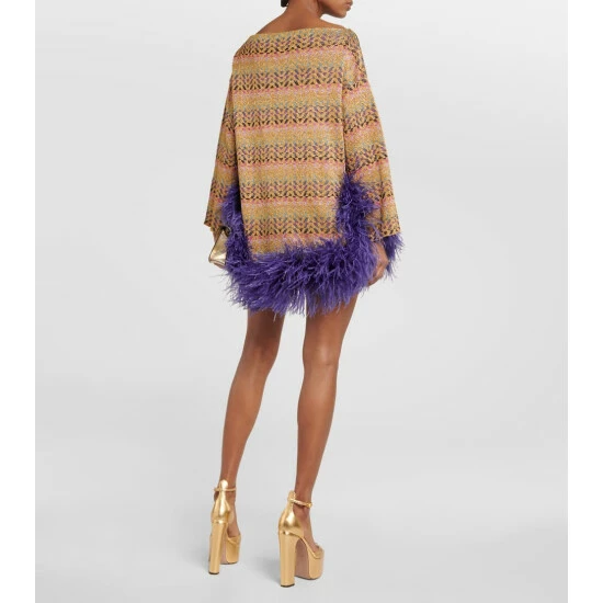 Nothing says glamour like this Valentino minidress. Finished with an explosive feather trim, this relaxed-fit design features a wide boat neckline and dropped shoulders, and is made with shimmering Lurex® threads and Optical V jacquard patterning.