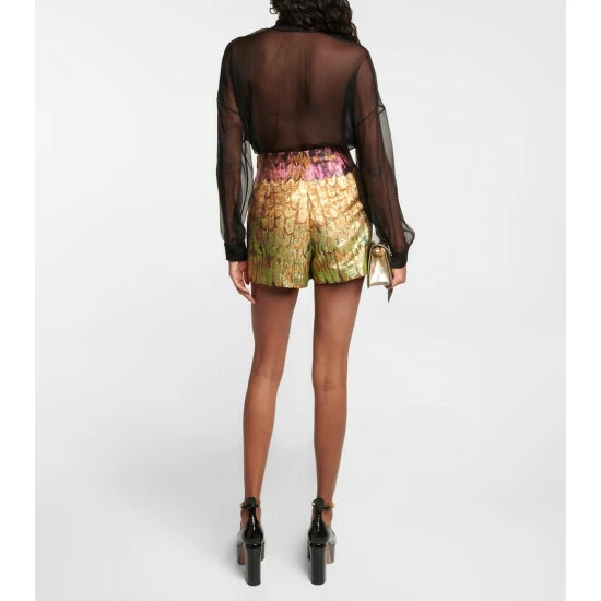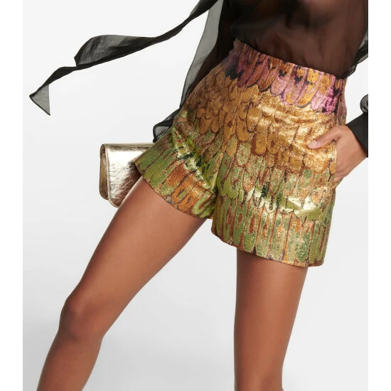 These shorts from Valentino feature a shimmery brocade pattern resembling a bird’s wings. Perfect for party season, the style has a high-rise waist and a silk lining for a luxurious finish.