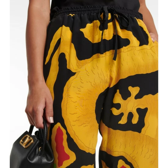 Relaxed, yet stylish, these cropped straight-leg pants from Valentino will suit a myriad of occasions. They’re made from fluid silk crêpe de chine and accented with a colorful dragon print and pajama-style piping.