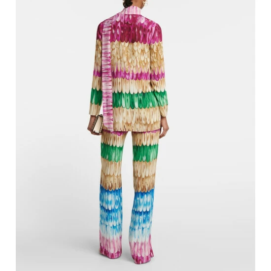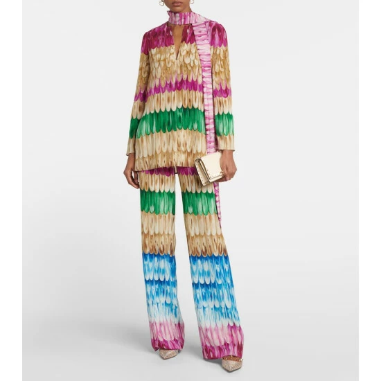 This elegant top from Valentino is made for day-to-night dressing. Crafted from pure silk, the style has a loose fit and features a whimsical print throughout that resembles bird’s feathers.