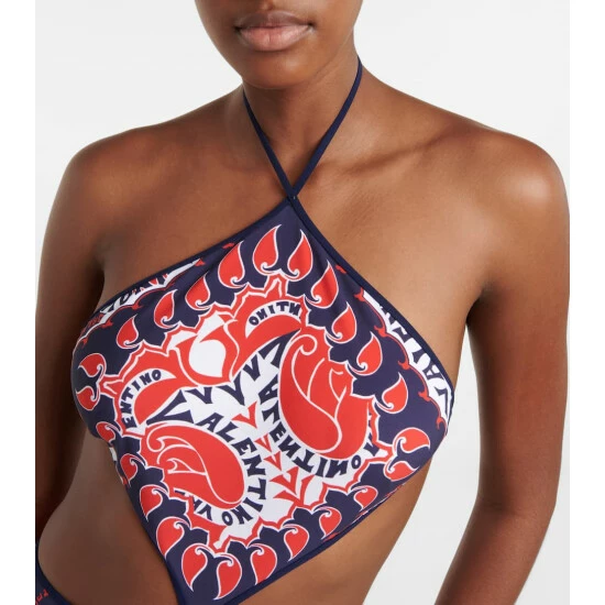 Make your summer wardrobe a logocentric one with this printed swimsuit from Valentino. Adorned with the Vlogo, this style features a halter neckline and cutout detailing and offer minimal coverage.