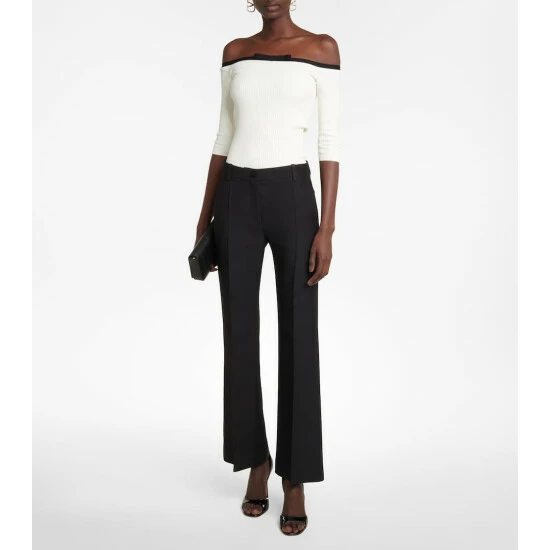 This off-shoulder top from Valentino blends subtle allure with sophistication. Designed for a slim fit, the ribbed-knit style features contrast trimming on the neckline with a bow detail.