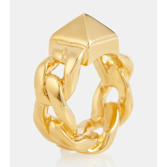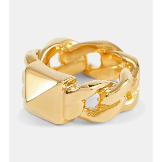 Valentino initially looked to antique architecture to create its now-iconic Rockstud detailing. The signature embellishment takes pride of place on this chunky, chain-link ring.
