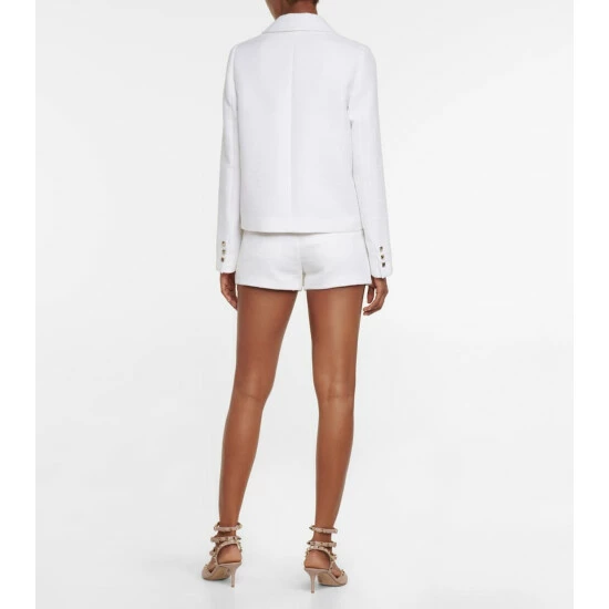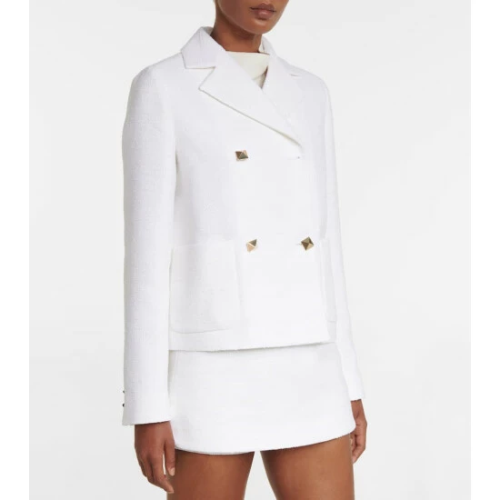 This elegant jacket from Valentino is rich in house codes, including the Roman Stud buttons and Optical V lining. Made from tweed, this double-breasted design has notched lapels and two patch pockets.