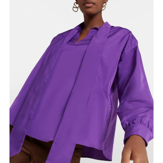 Tailored with Valentino’s modern vision, this cotton-blend shirt has a vented neckline that’s layered with a scarf detail. This piece has long cuffed sleeves and a longline hem.