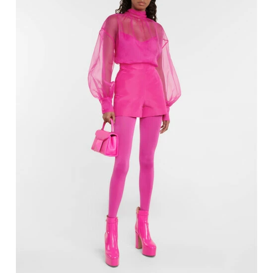 Visual saturation was the theme of Valentino’s all-pink AW22 runway show, which electrified the fashion world and prompted a fresh addition to the Pantone color scale. These shorts are made from lustrous silk faille with a high waist and minimal detailing.