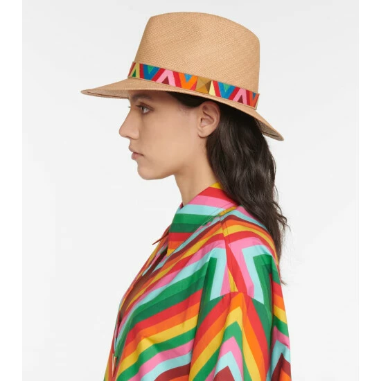 This straw fedora from Valentino is a summer essential. It’s elegantly accented with an archival Optical V motif ribbon and a signature Roman Stud.