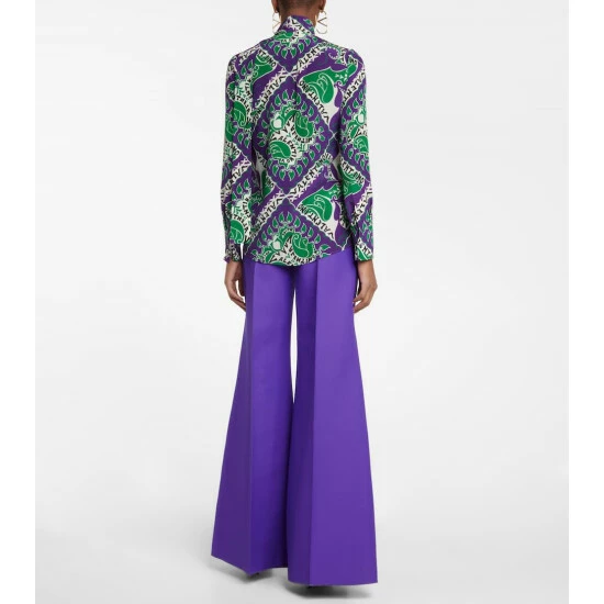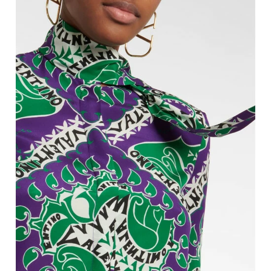 Valentino’s vibrant print defines this elegant blouse, offering label-signature style. Made in Italy from lustrous silk, the flowing design features a relaxed silhouette, a buttoned front, and a scarf detail at the neck.