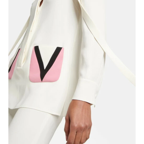 For a sophisticated look with a twist turn to Valentino’s designs like this shirt. Made from pure silk, it features a pink V logo detail on the pockets and a tie-neck that can be worn dangling.