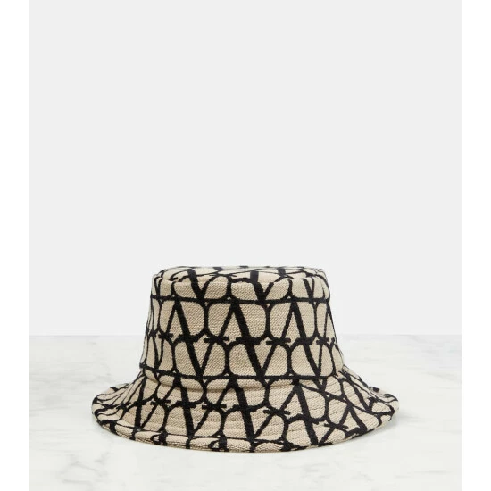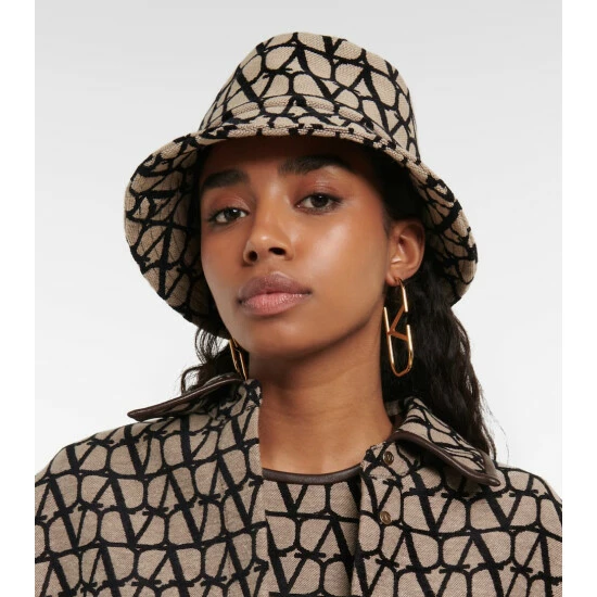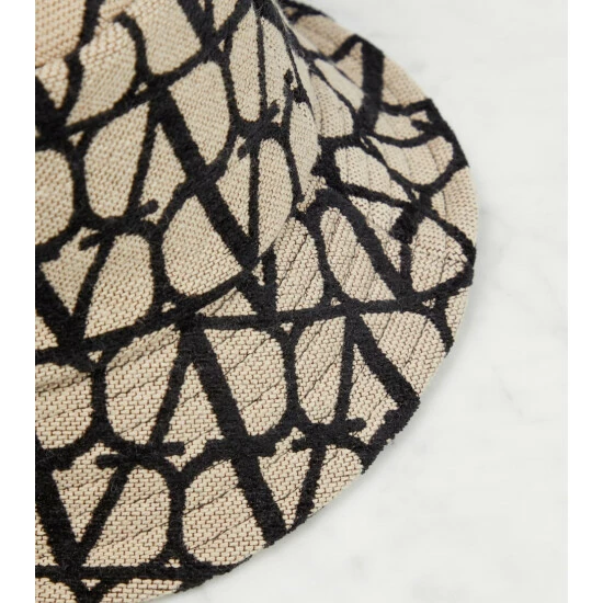 Valentino’s Toile Iconographe collection introduces a ’70s-inspired repeating VLogo pattern that has a striking visual impact. This bucket hat features the signature pattern.