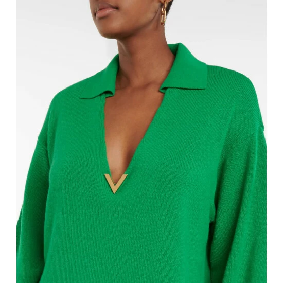 This full cashmere sweater from Valentino is cut into an oversized fit and finished with ribbed-knit trims. The V-neck design is embellished with the brand’s signature VGOLD hardware for an element of subtle glamour.