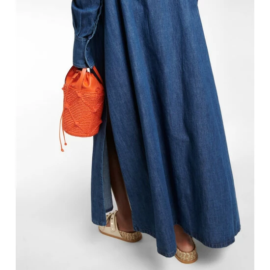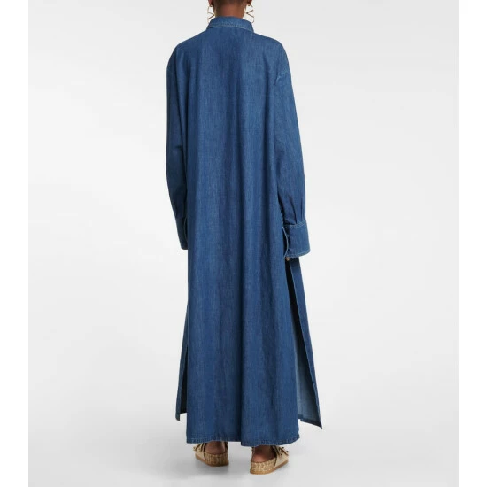 Valentino updates the classic shirt dress with bold precision for this maxi style. Reinventing heritage denim, this cotton style has jean-inspired topstitching, chest pockets embellished with VGOLD motifs, and splits to the hem.