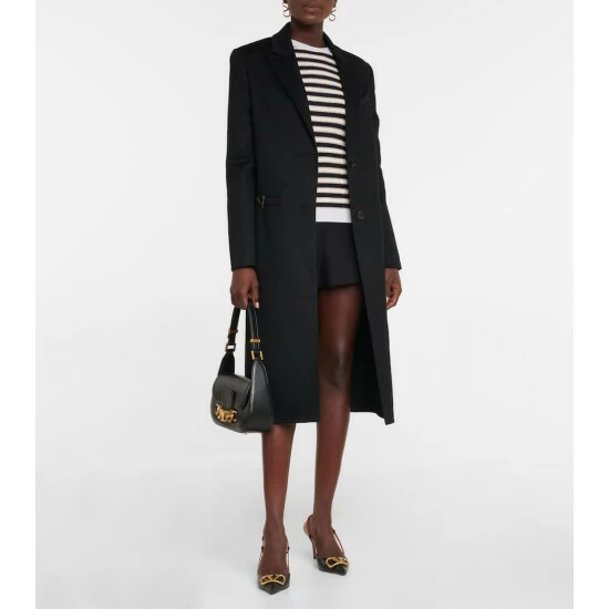 The Compact Drap coat from Valentino is distinguished by its luxe double-faced weave of virgin wool and cashmere. The single-breasted design has VGOLD hardware on the front pockets and a structured, streamlined silhouette.