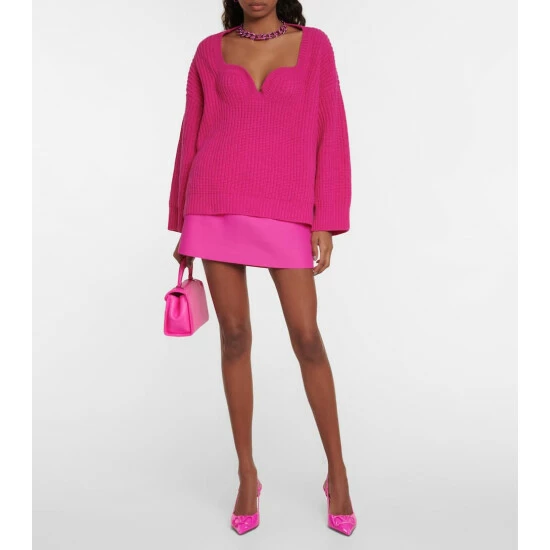 Brighten your edit with the most glamorous shade of the season: made from virgin wool yarns, this Valentino sweater comes in vibrant Pink PP and features an oversized fit. The ribbed style is finished with the collection’s signature plunging neckline.
