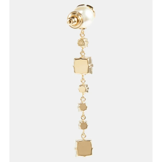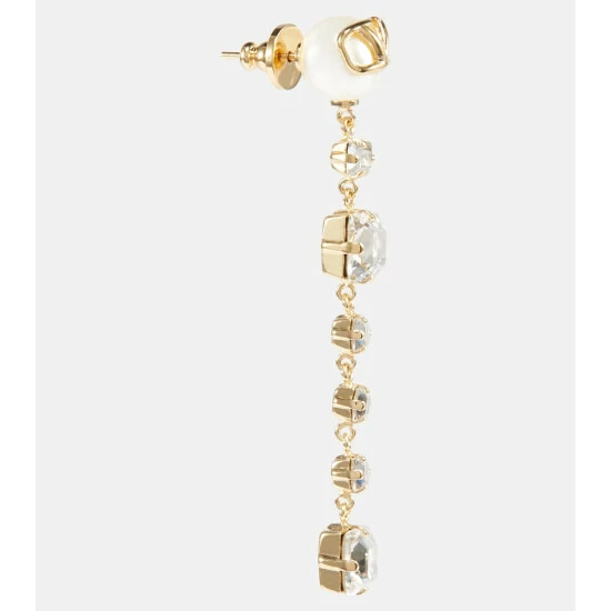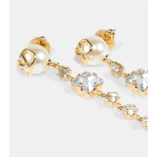 Complete any ensemble on a sparkling note with these drop earrings from Valentino. The gold-tone style features a VLogo pendant with dazzling square-shaped crystal embellishments of various sizes.