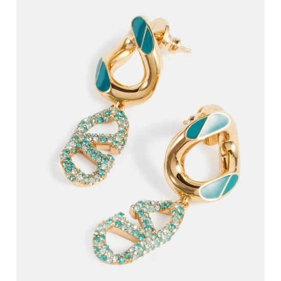 These VLogo earrings from Valentino will add a sense of modern opulence to your look. The gold-tone style is made from brass and features crystal-embellished VLogo charms for enviable recognition.