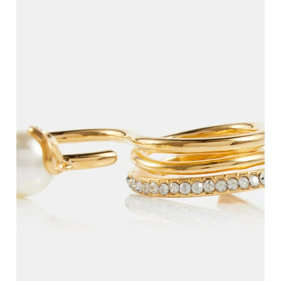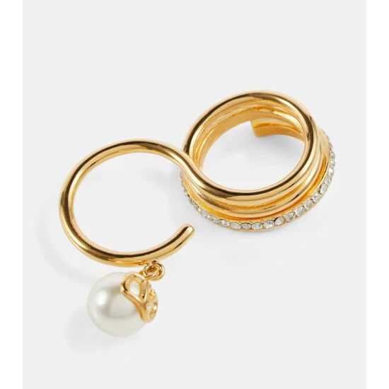 Valentino’s VLogo has carried an impressive pedigree since its ’60s debut as part of the house’s “White Collection”. This gold-toned stacked ring features a faux Swarovski pearl and crystal embellishments for elevated appeal.
