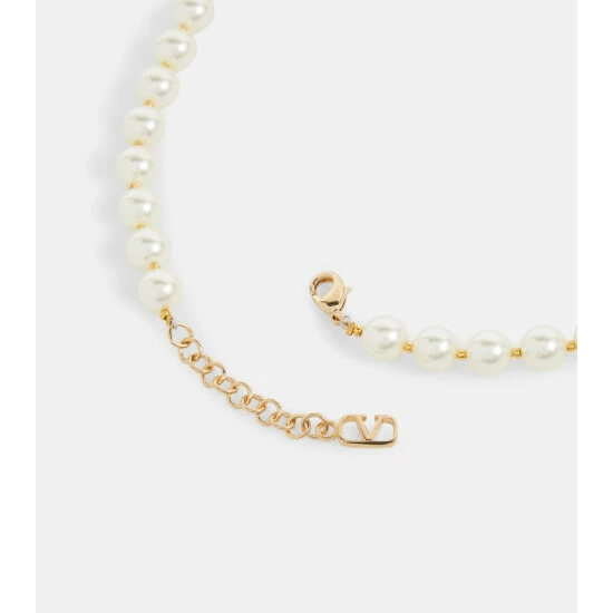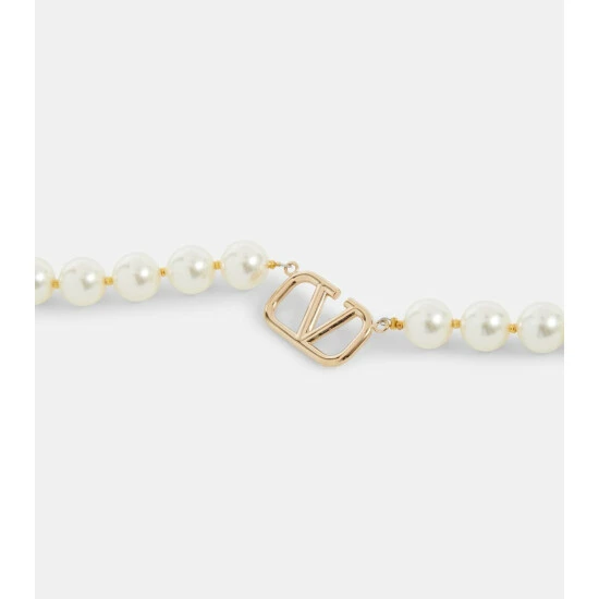 Complete your ensemble with this shimmery faux pearl necklace from Valentino. The style features a gold-toned VLogo pendant and has a lobster clasp fastening.