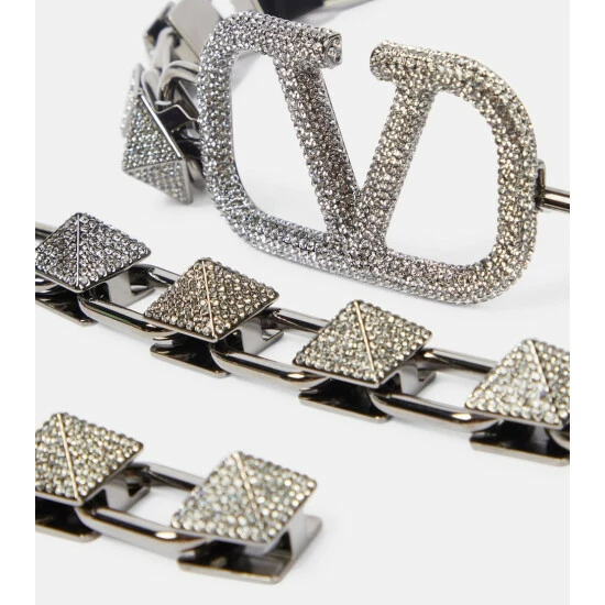 Boost your muted outfits with the VLogo Roman Stud chain belt from Valentino. Designed with a crystal-embellished logo and pyramid studs, it fastens with a practical hook.