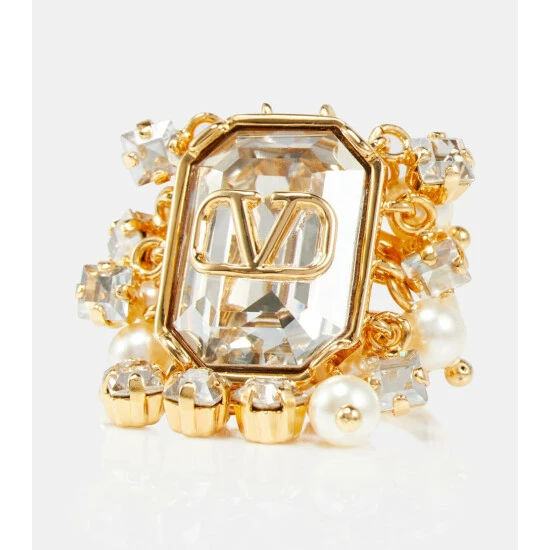 At once iconic and understated, Valentino Garavani’s VLogo carries the Maison’s legacy of elegance. This ring features an oversized crystal base that’s punctuated with a VLogo Signature plaque and detailed with a dynamic embellished border.