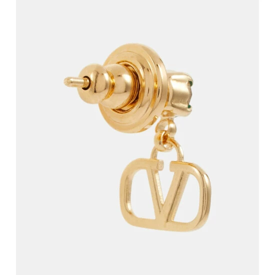 Add just a hint of sparkle with Valentino’s VLogo Signature earrings. This gold-tone design featuring monogram pendants is embellished with light-catching green Swarovski crystals.