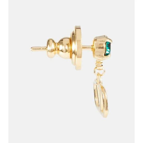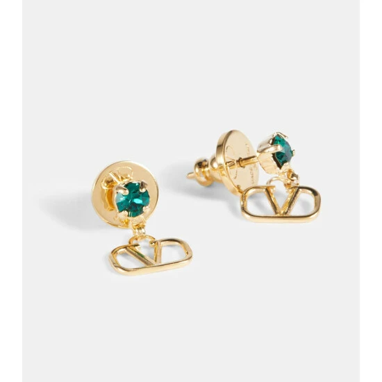 Add just a hint of sparkle with Valentino’s VLogo Signature earrings. This gold-tone design featuring monogram pendants is embellished with light-catching green Swarovski crystals.
