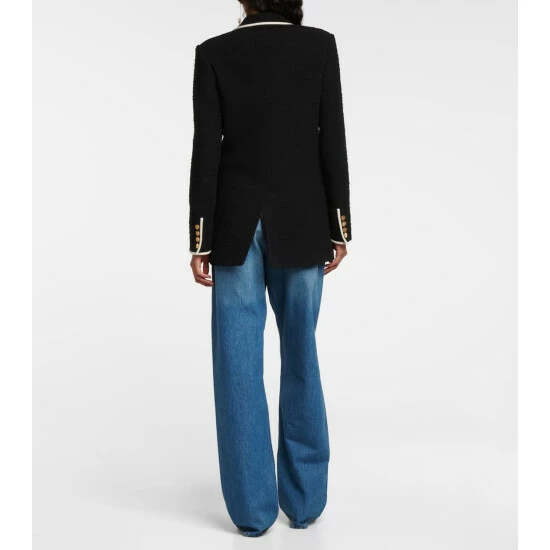 This Valentino blazer is beautifully crafted from wool-blend tweed in a boxy, double-breasted fit. It’s accented with contrast piping and golden VLogo buttons.